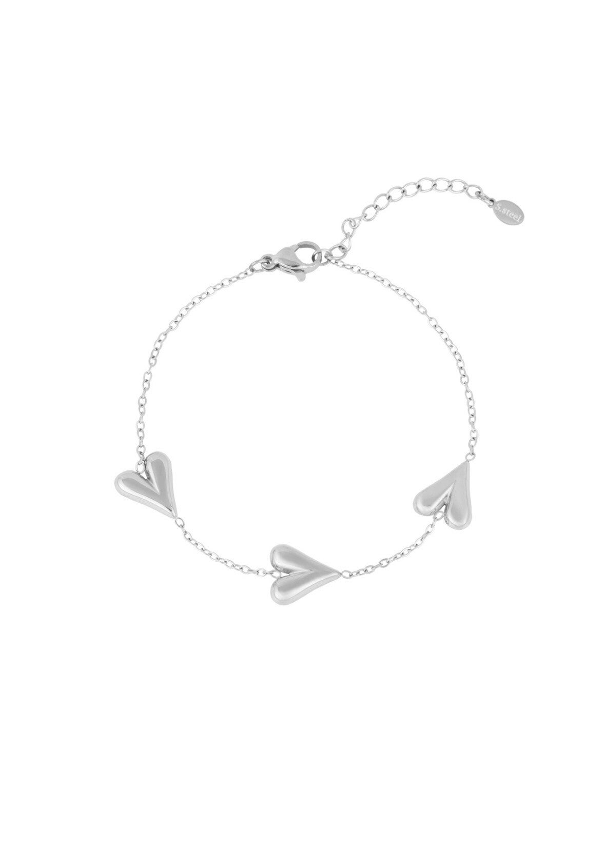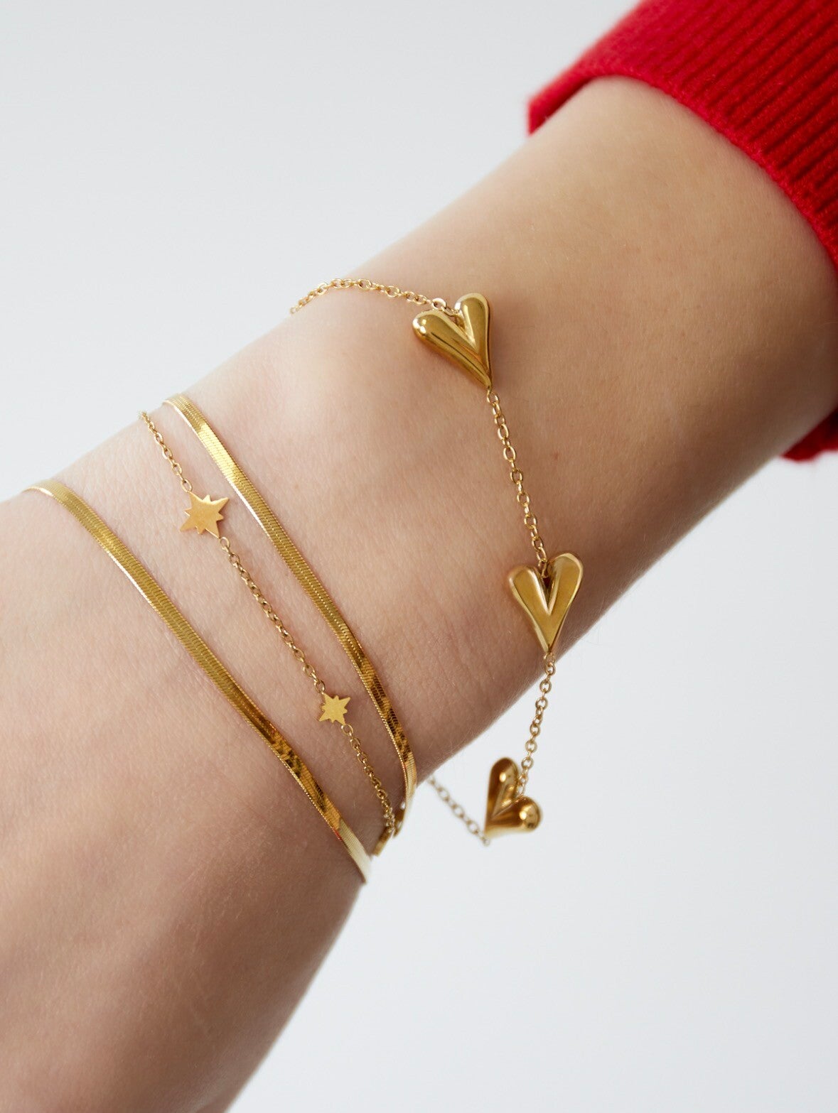 Armband in goud of zilver met verfijnde hartjes-bedeltjes.