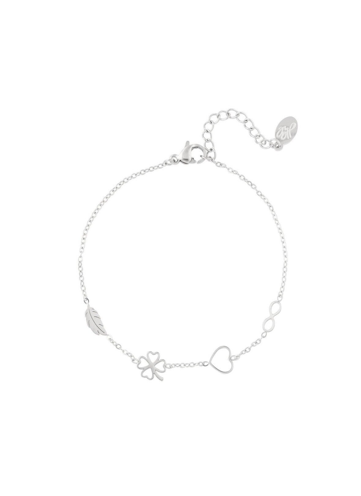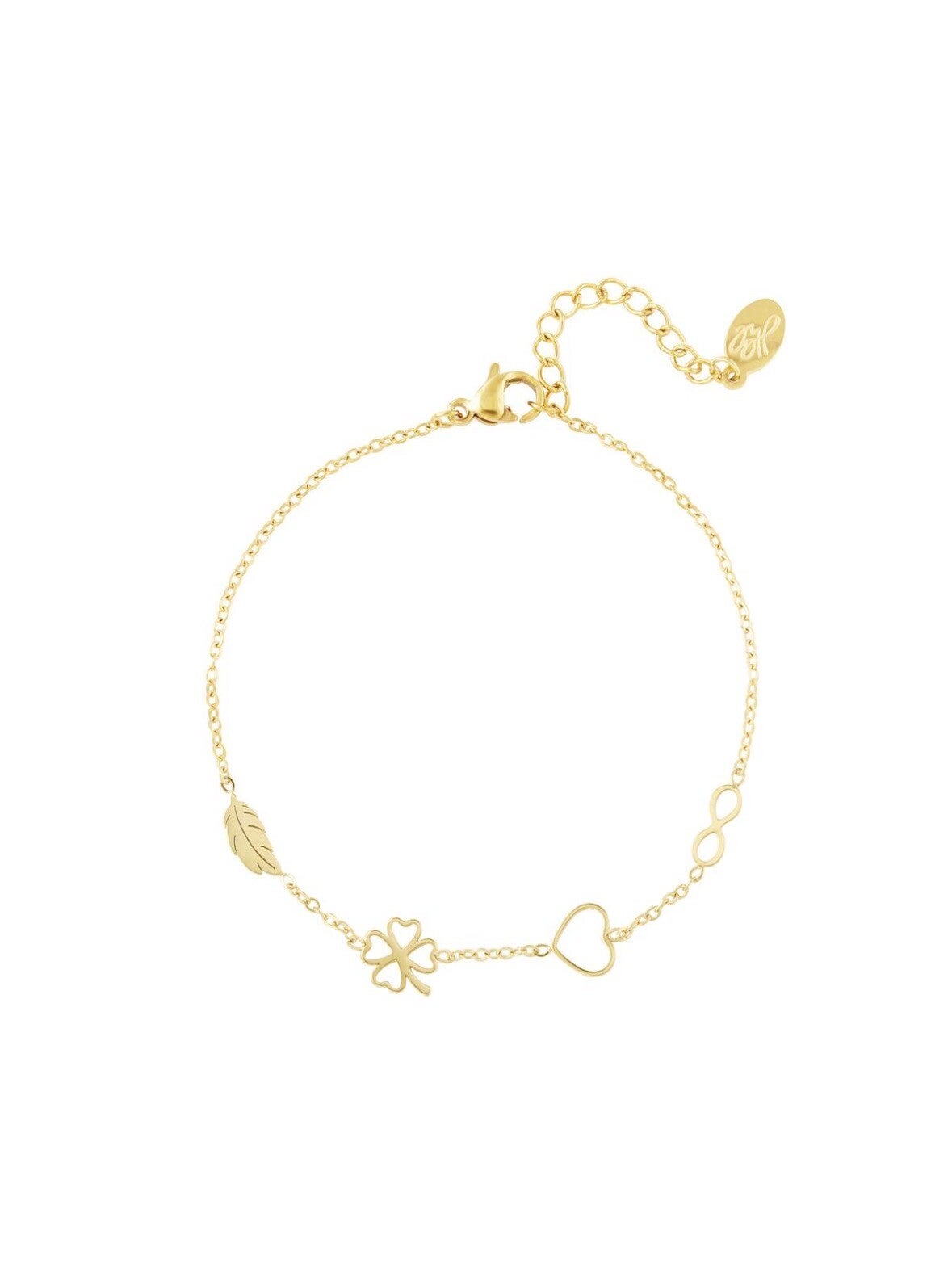 Een elegante, minimalistische armband met fijne bedeltjes die symbool staan voor hoop en geluk. Gemaakt van hoogwaardig roestvrijstaal, volledig waterbestendig en verkleurt niet. Perfect voor dagelijks gebruik en elk outfit.