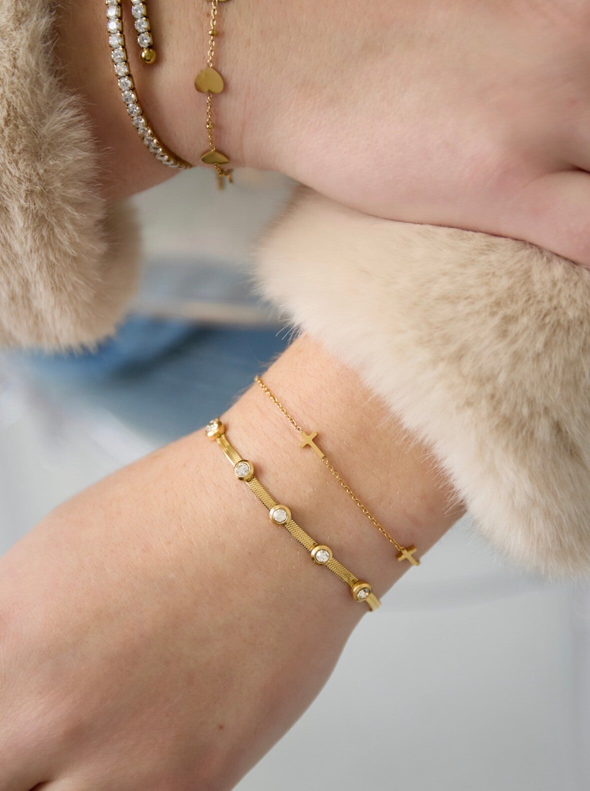 Subtiele armband met strass steentjes Een elegante, minimalistische armband. Gemaakt van hoogwaardig roestvrijstaal, volledig waterbestendig en verkleurt niet. Perfect voor dagelijks gebruik en elk outfit.